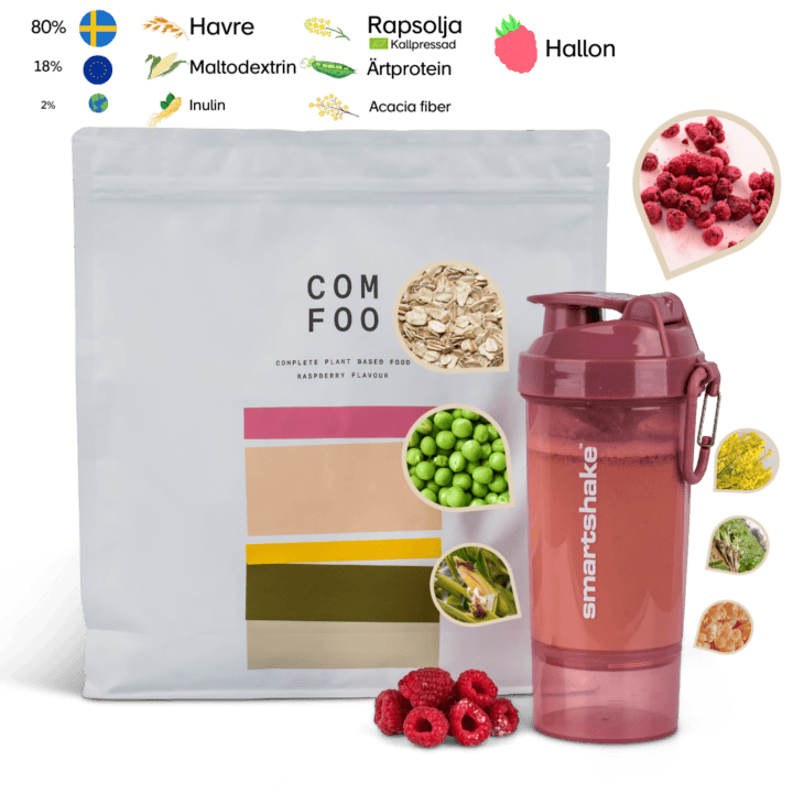 Innan vi börjar jämföra Jimmy Joy´s Plenny Shake och ComFoo´s Raspberry Rush ska vi lägga alla korten på bordet. Det är nämligen så att ComFoo´s VD (Albin Sandell) var den som tog Plenny Shake till Svenska marknaden under namnet “SweJoy” år 2017. Några år in i samarbetet valde Jimmy Joy och Albin att gå skilda vägar. Det var då Albin startade ComFoo, ett nytt och eget projekt där fokuset är raka motsatsen till JimmyJoy. ComFoo’s värdegrund står för att vara marknadens högst kvalitativa och närproducerade kompletta måltid som självklart tillverkas i Sverige.